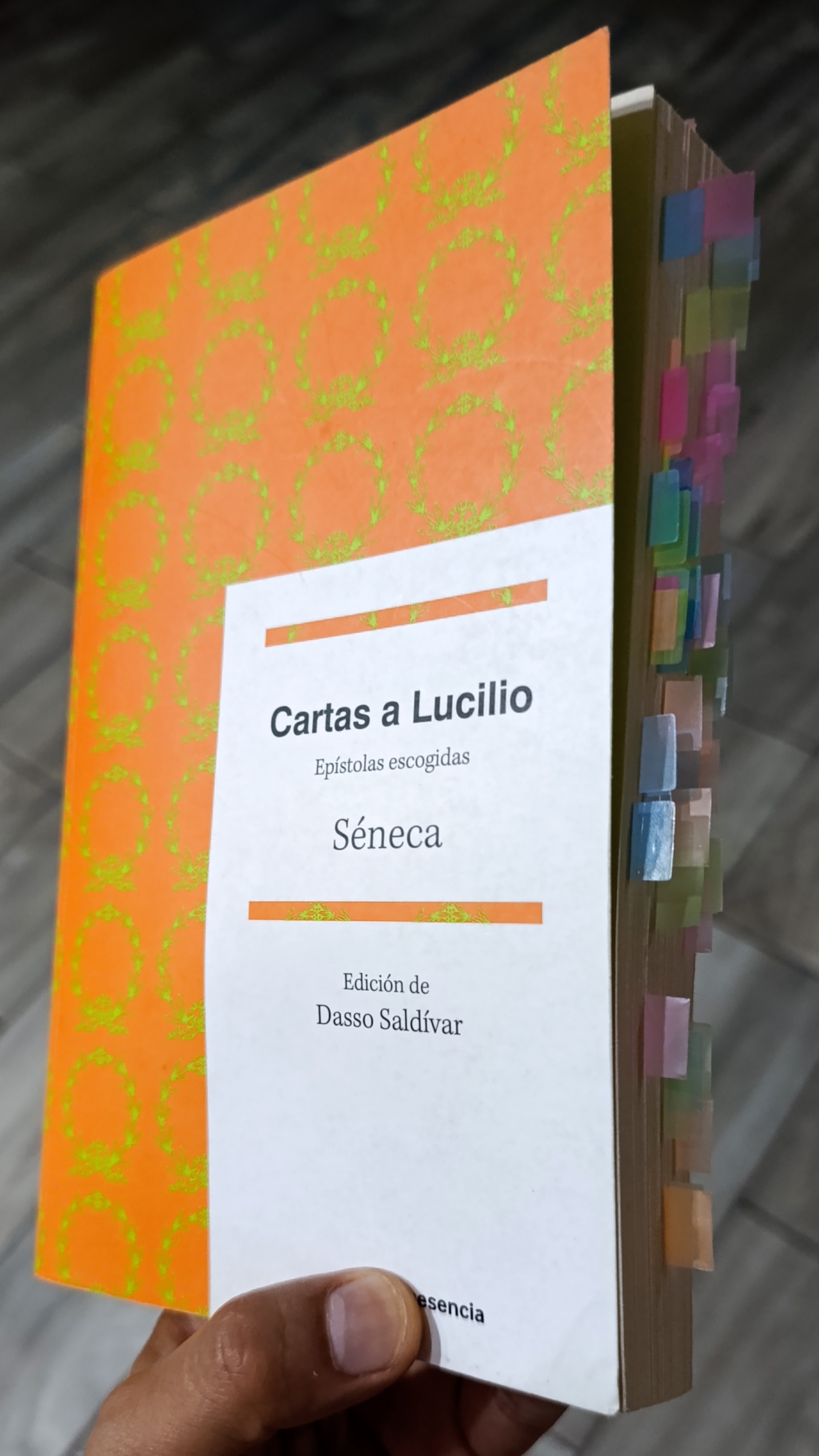 Cartas a Lucilio de Séneca (Edición Saldivar) es un compendio epistolar de Séneca con grandes enseñanzas de vida. Esta edición me ha parecido increíble: buena traducción, buena selección de cartas dividida y, sobre todo, respetando un orden casi cronológico.